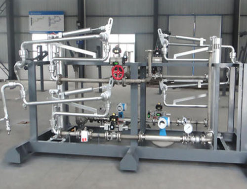 油品定量裝車橇裝組是指將每一個(gè)裝車鶴位內(nèi)的儀表和設(shè)備集成在一個(gè)專用的框架結(jié)構(gòu)內(nèi),儀表和設(shè)備包括裝車鶴管、流量計(jì)、防溢油靜電報(bào)警控制器、壓力變送器、裝車流量控制閥、緊急切斷閥,裝車泵、批量控制器等, 只預(yù)留工藝連接口和控制電源和通訊接口,這個(gè)整體集成部分稱為裝車橇。與傳統(tǒng)的裝車控制系統(tǒng)就地組裝比較,裝車橇可以節(jié)省現(xiàn)場(chǎng)設(shè)計(jì)和現(xiàn)場(chǎng)施工量,縮短項(xiàng)目工期,提高裝車控制系統(tǒng)的質(zhì)量。